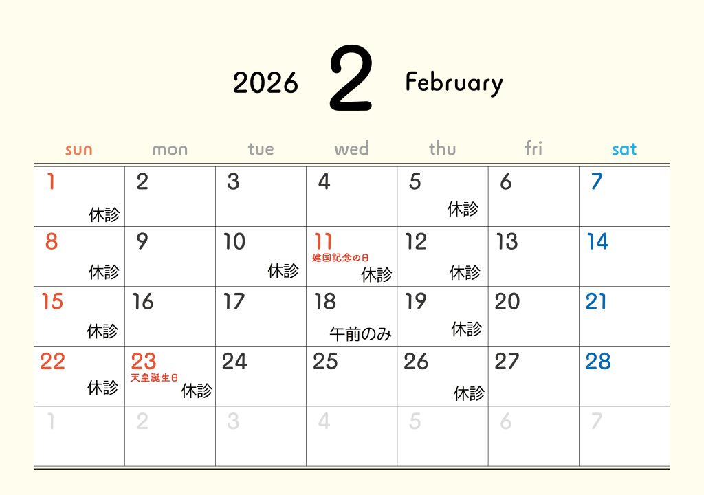 2月の休診日は以下の通りです。